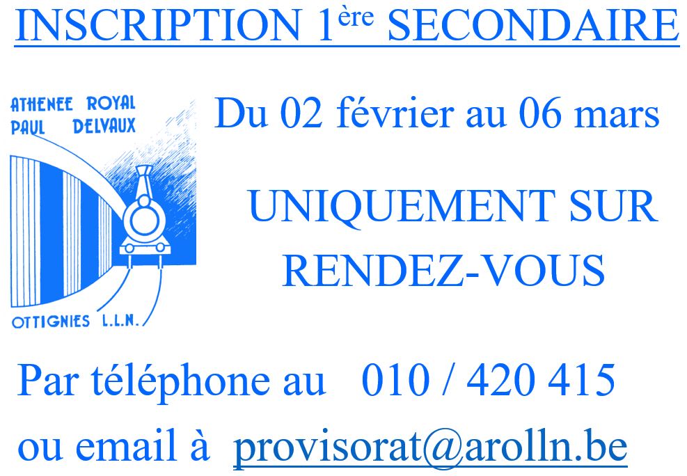 Inscriptions : pour la 1ère secondaire 2026-2027 les inscriptions auront lieux du lundi 02 février au vendredi 06 mars, pour plus de détails ici : Procédure